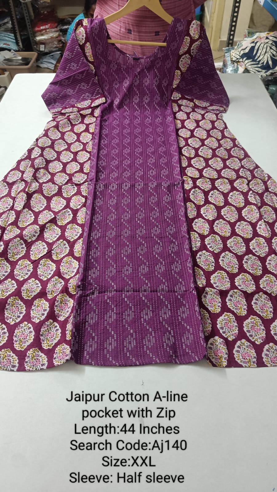 Jaipur Cotton A-Line Kurtis Fabric: Jaipur Cotton Length: 44 Inches Size Chart: M – 40...