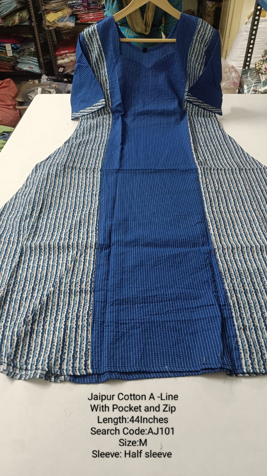 Jaipur Cotton A-Line Kurtis Fabric: Jaipur Cotton Length: 44 Inches Size Chart: M – 40...