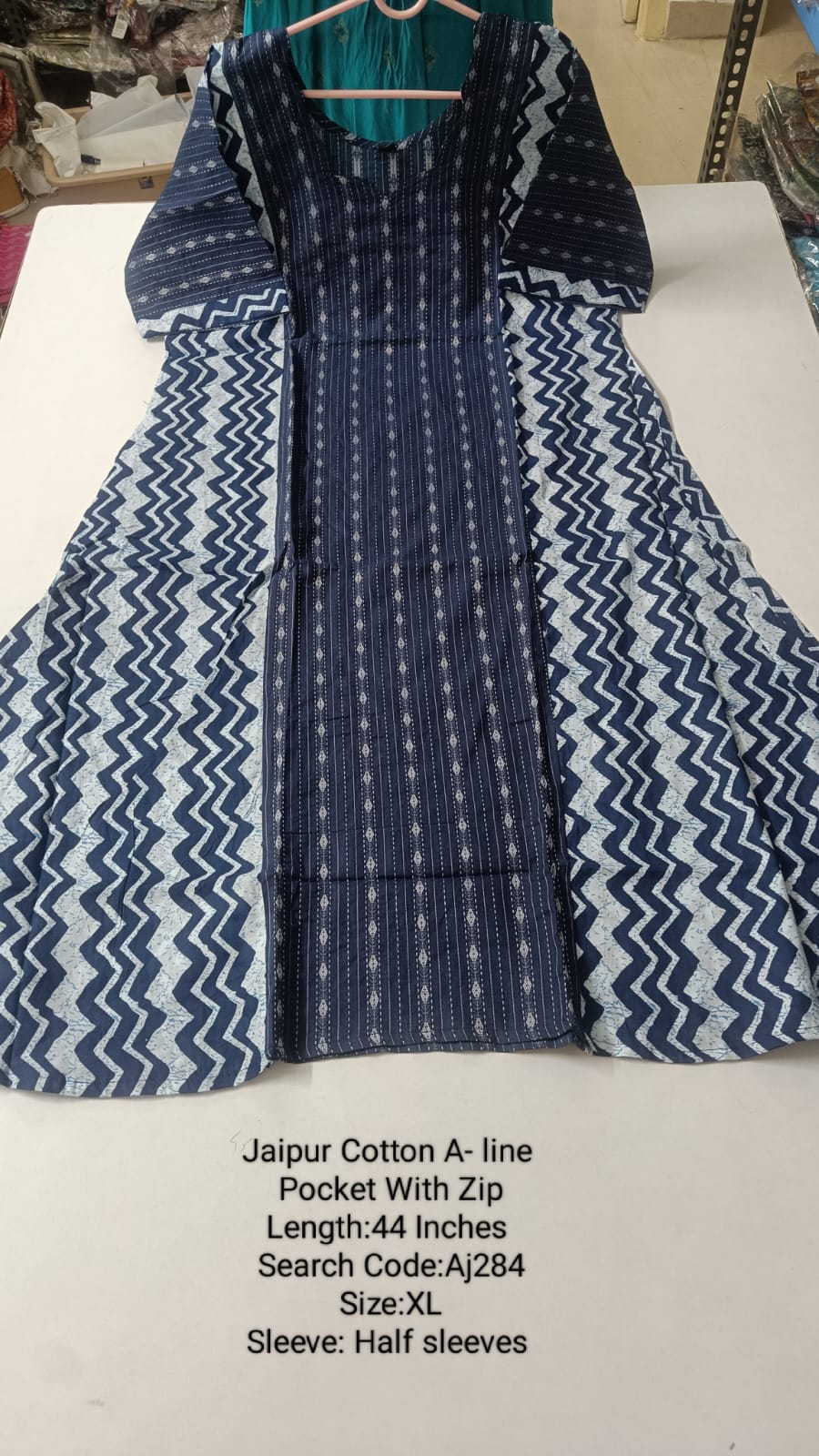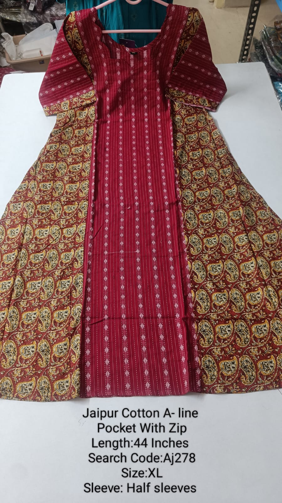 Jaipur Cotton A-Line Kurtis Fabric: Jaipur Cotton Length: 44 Inches Size Chart: M – 40...