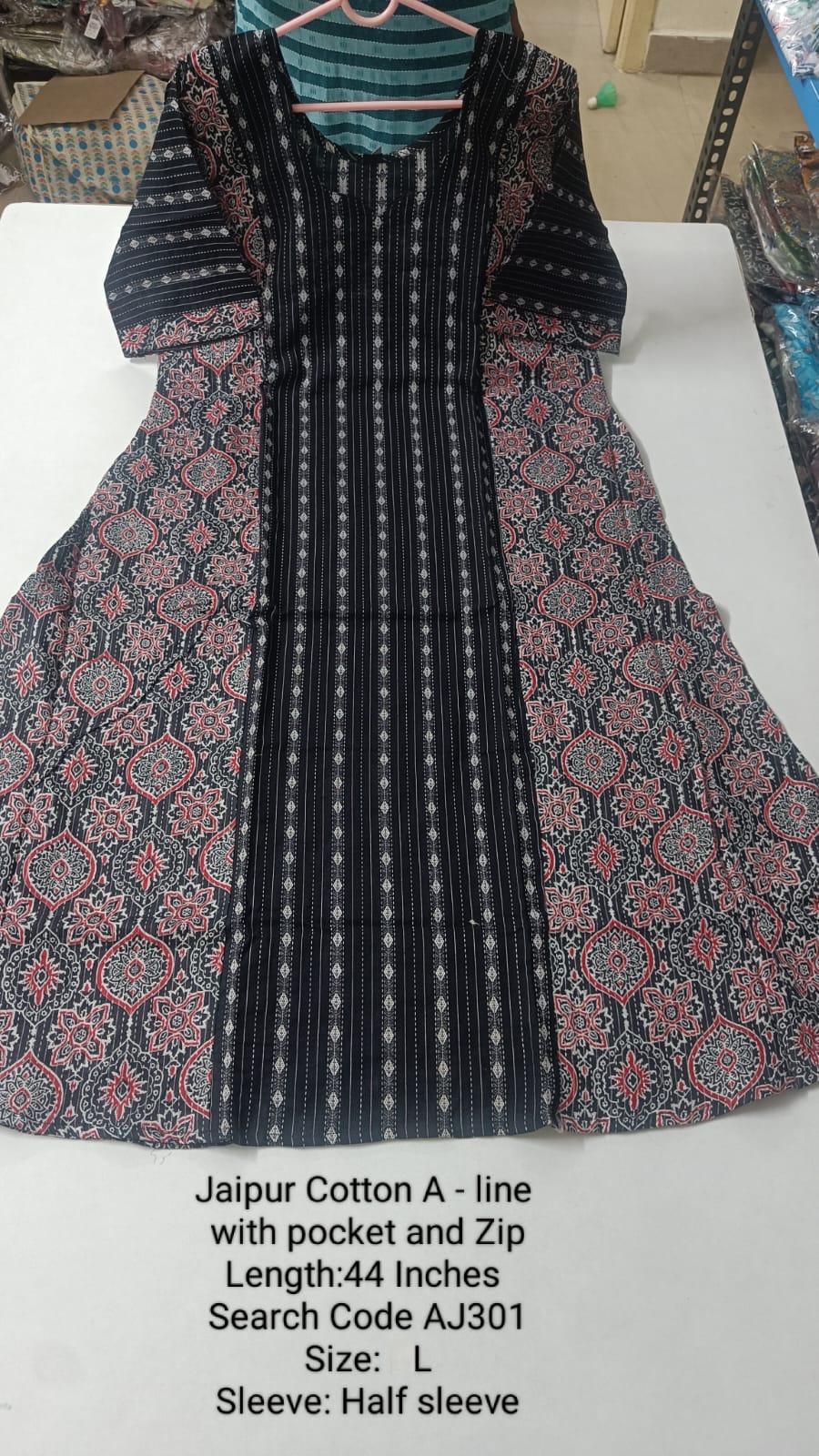 Jaipur Cotton A-Line Kurtis Fabric: Jaipur Cotton Length: 44 Inches Size Chart: M – 40...