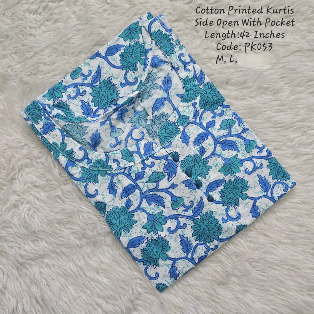Blue Cotton Printed Side Open Kurtis - PK053