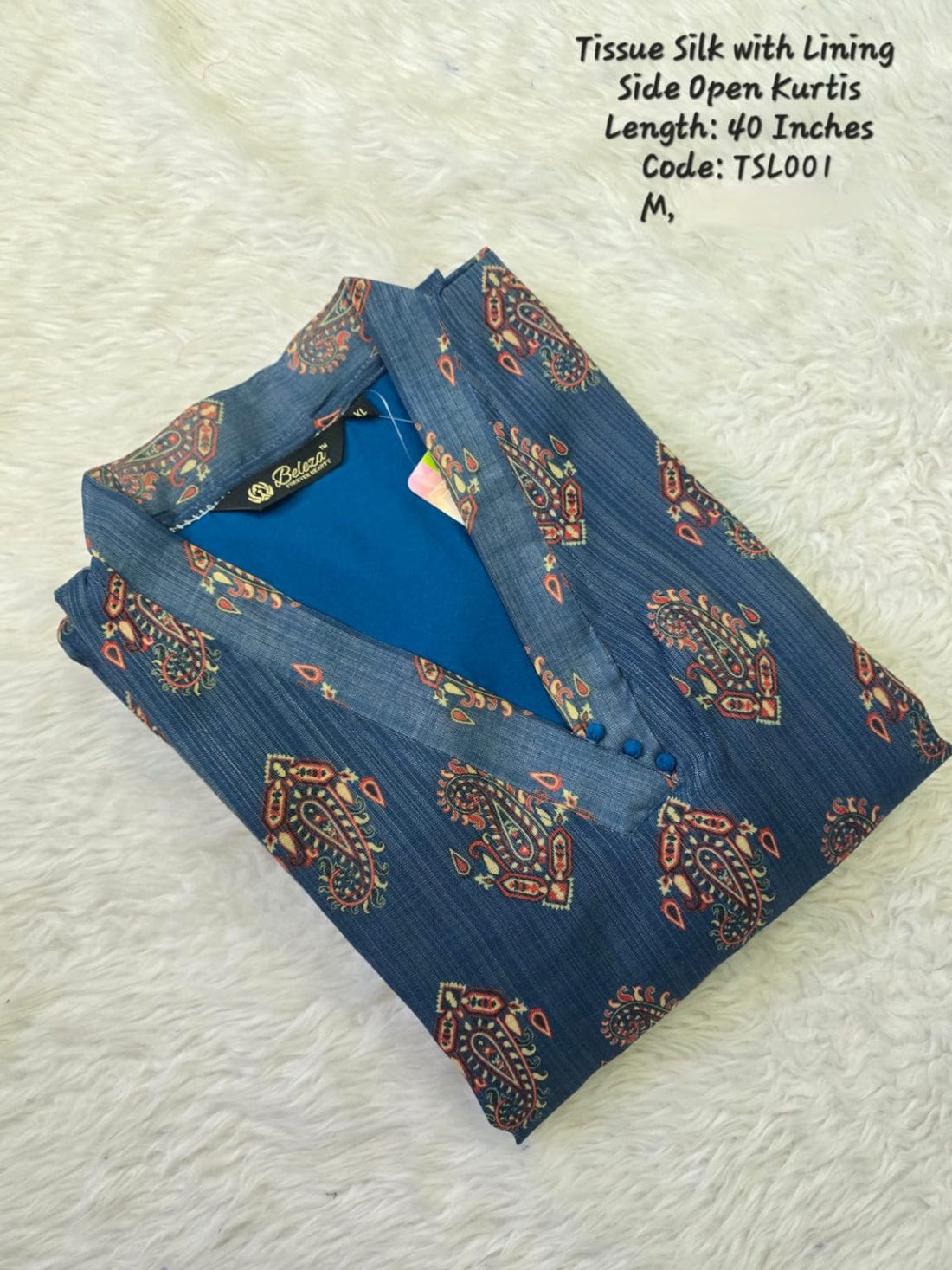 Blue Daily Wear Tissue Silk Side Open Kurtis - TSL001