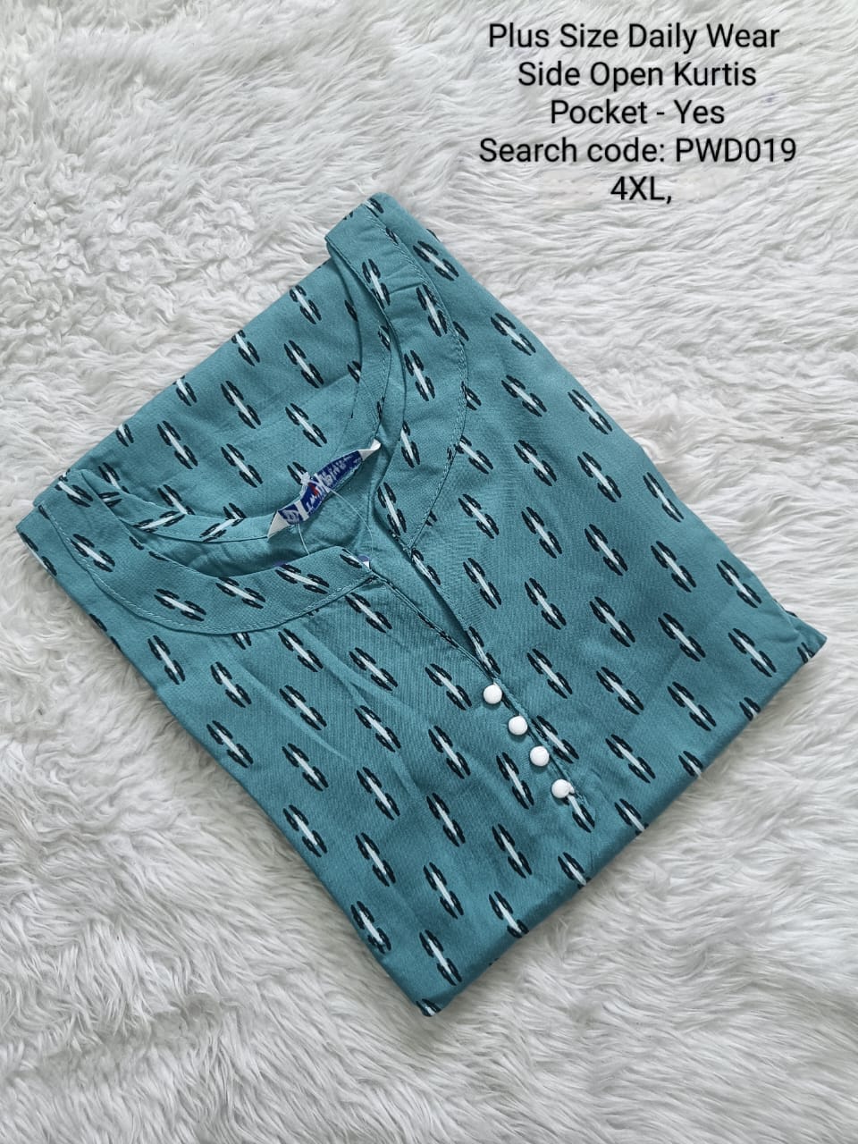 Blue Rayon Plus Size Daily wear Budget Side Open Kurtis - PWD019