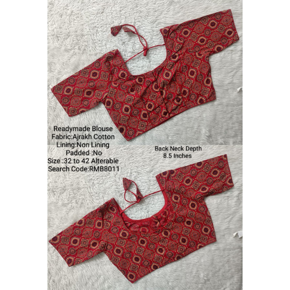 Red Hand block Cotton 3 Dart Ready Made Blouse -RMB8011