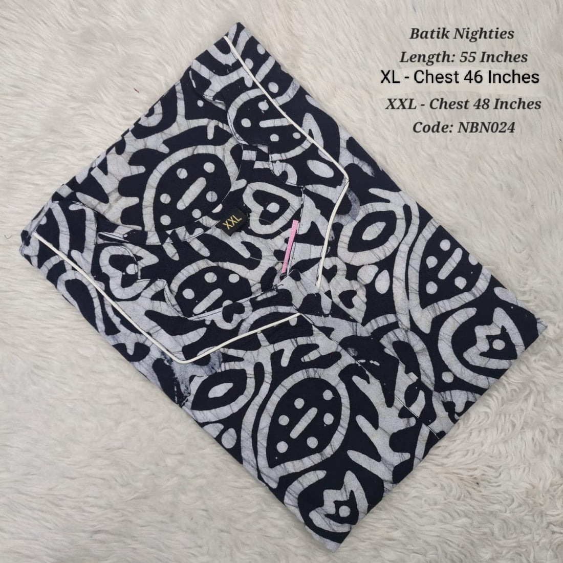 Navy Blue Cotton Nila Batik Nighties - NBN024