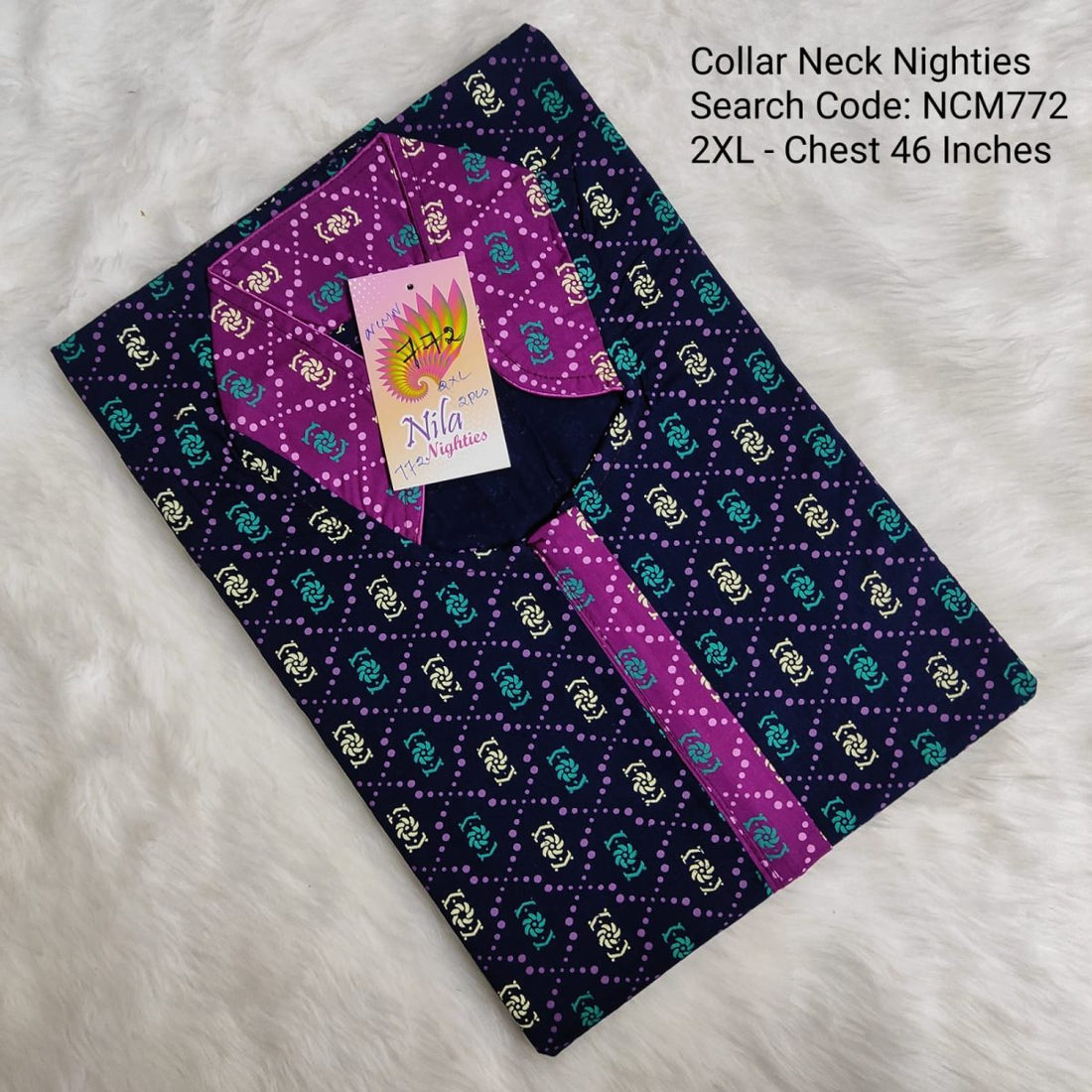 Ink Blue Cotton Nila Collar Neck Model Nighties -NCM772