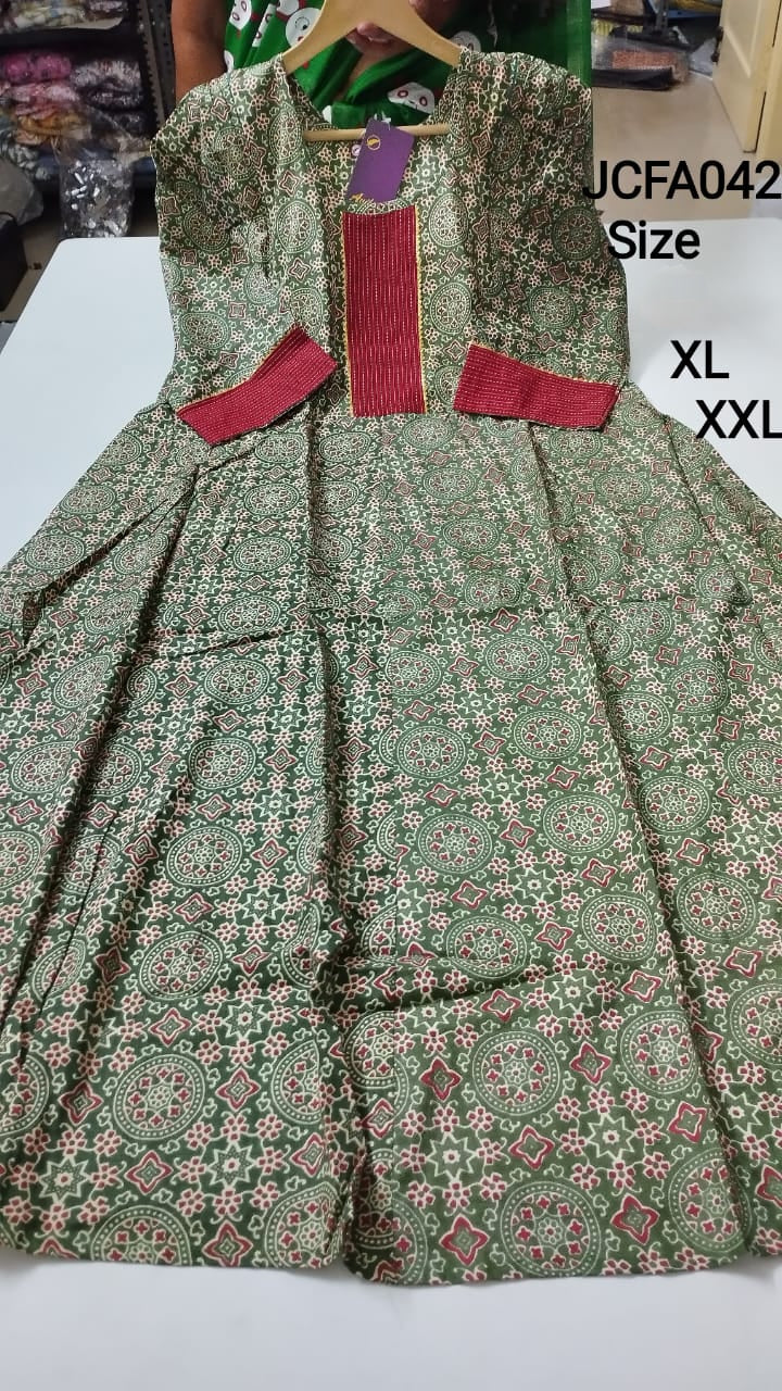 Green Jaipur Cotton Feeding Anarkali - JCFA042