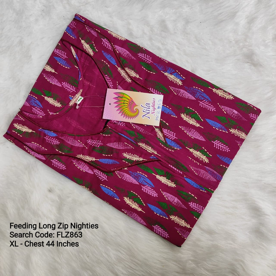 Wine Cotton Nila Feeding Nighties -FLZ853