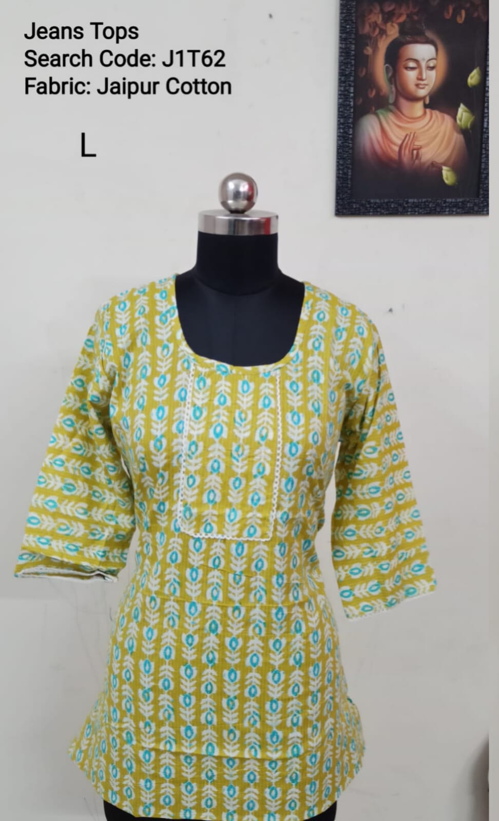 Green Jaipur Cotton Tunics / Peplum Tops -J1T10