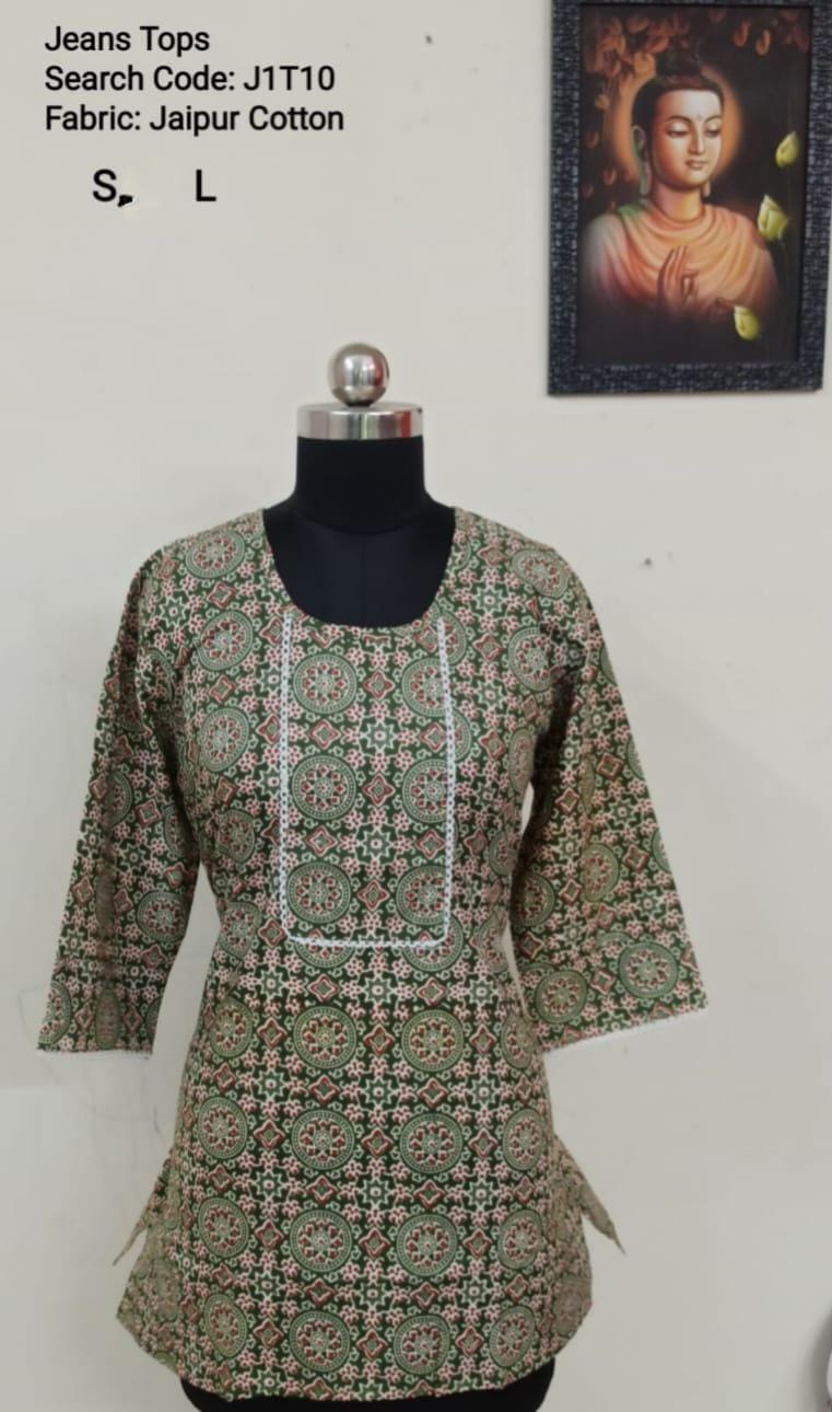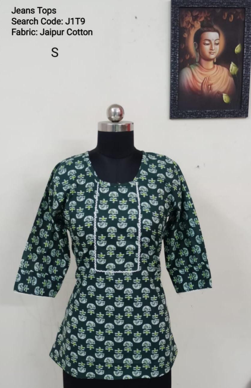 Green Jaipur Cotton Tunics / Peplum Tops -J1T76