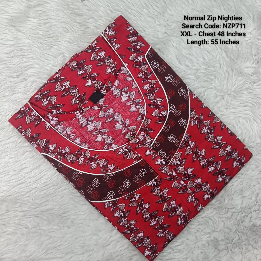 Brown Cotton Nila Normal Zip Nighties - NZP709