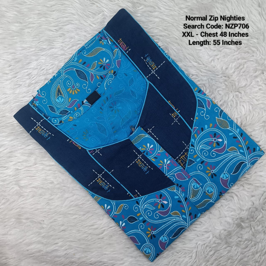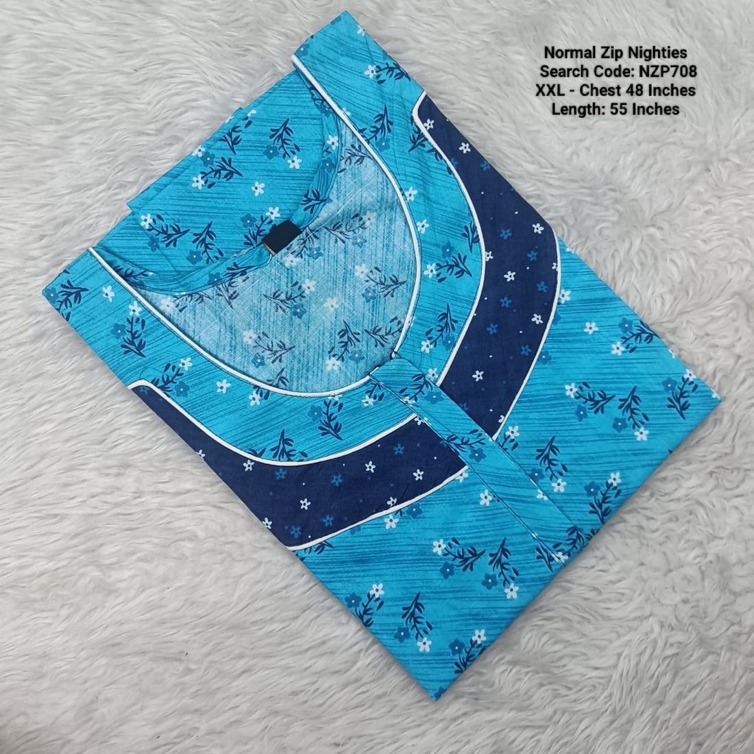 Blue Cotton Nila Normal Zip Nighties - NZP720