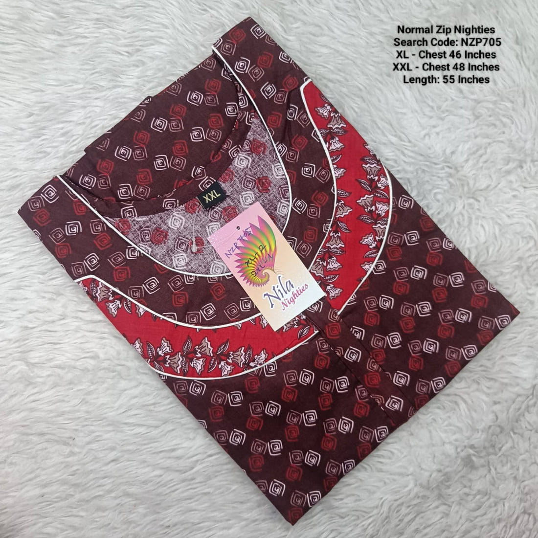Brown Cotton Nila Normal Zip Nighties - NZP705