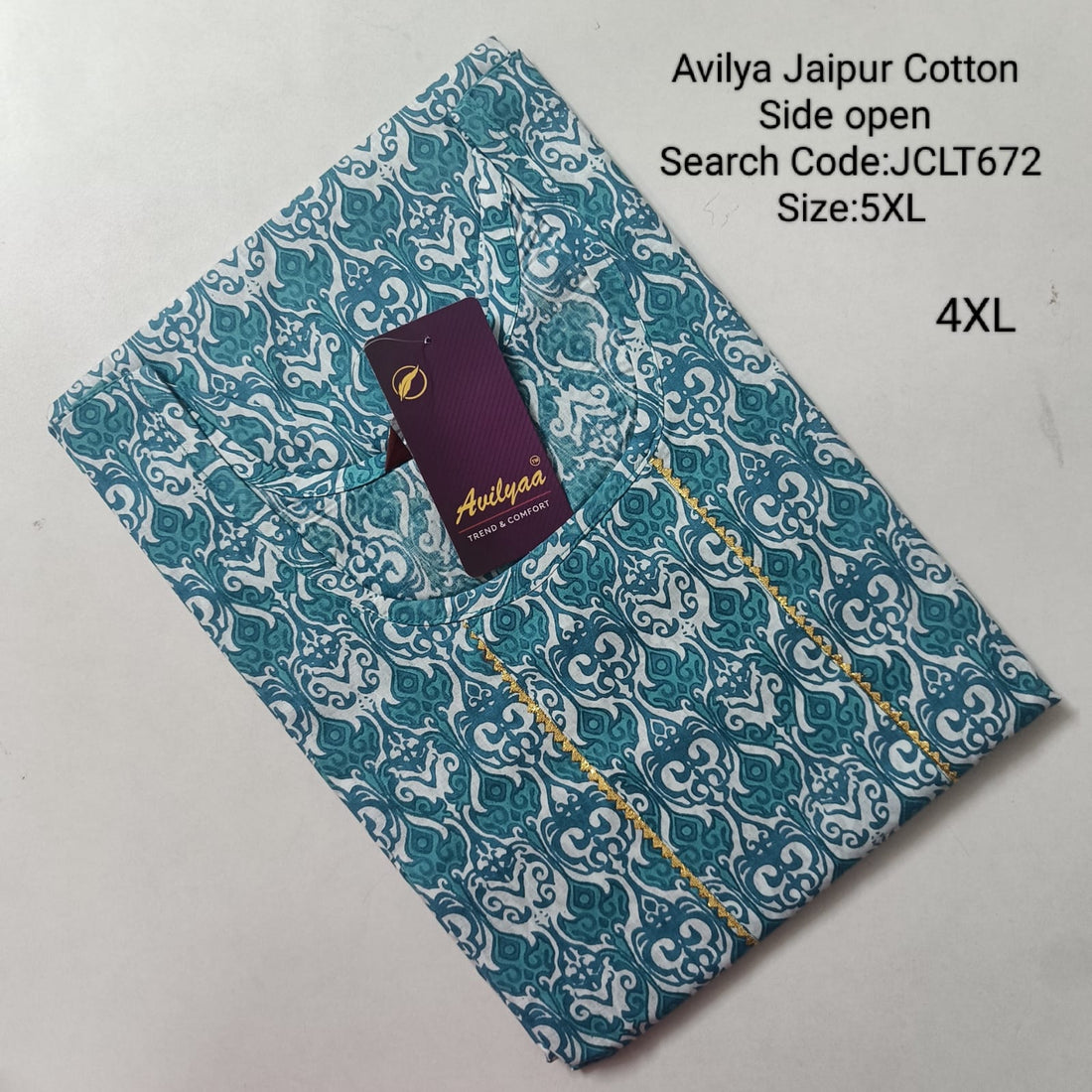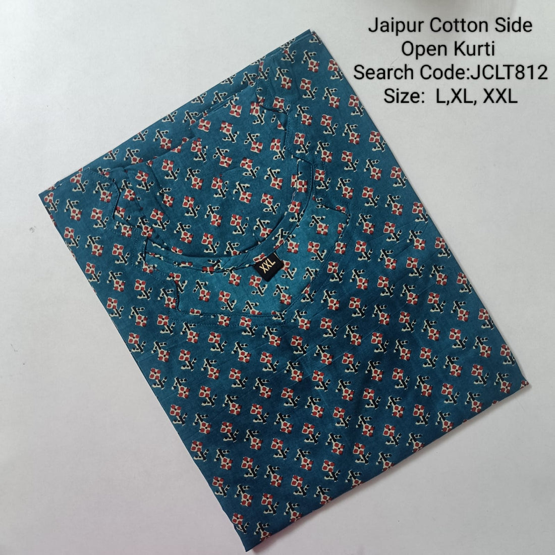 Teal Jaipur Cotton Side Open Kurti Top Only Collection -JCLT812