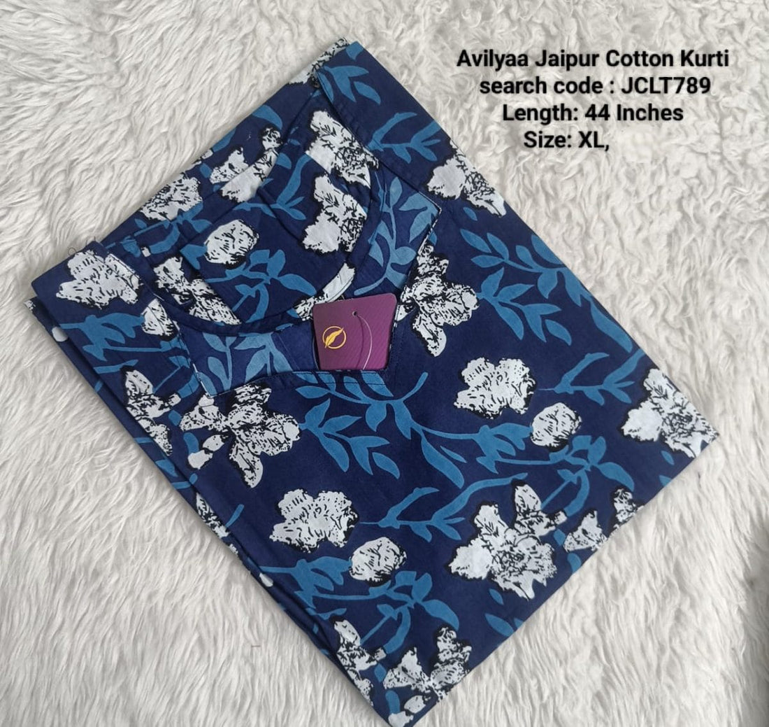 Ink Blue Jaipur Cotton Side Open Kurti Top Only Collection -JCLT789