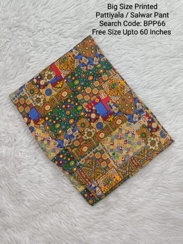 BPP66- Plus Size Cotton Printed Pattiyala / Salwar Pant – Free Size Upto 60 Inches
