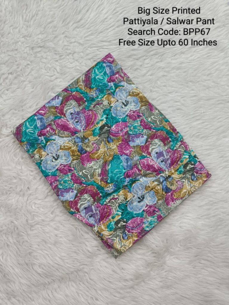 BPP67- Plus Size Cotton Printed Pattiyala / Salwar Pant – Free Size Upto 60 Inches