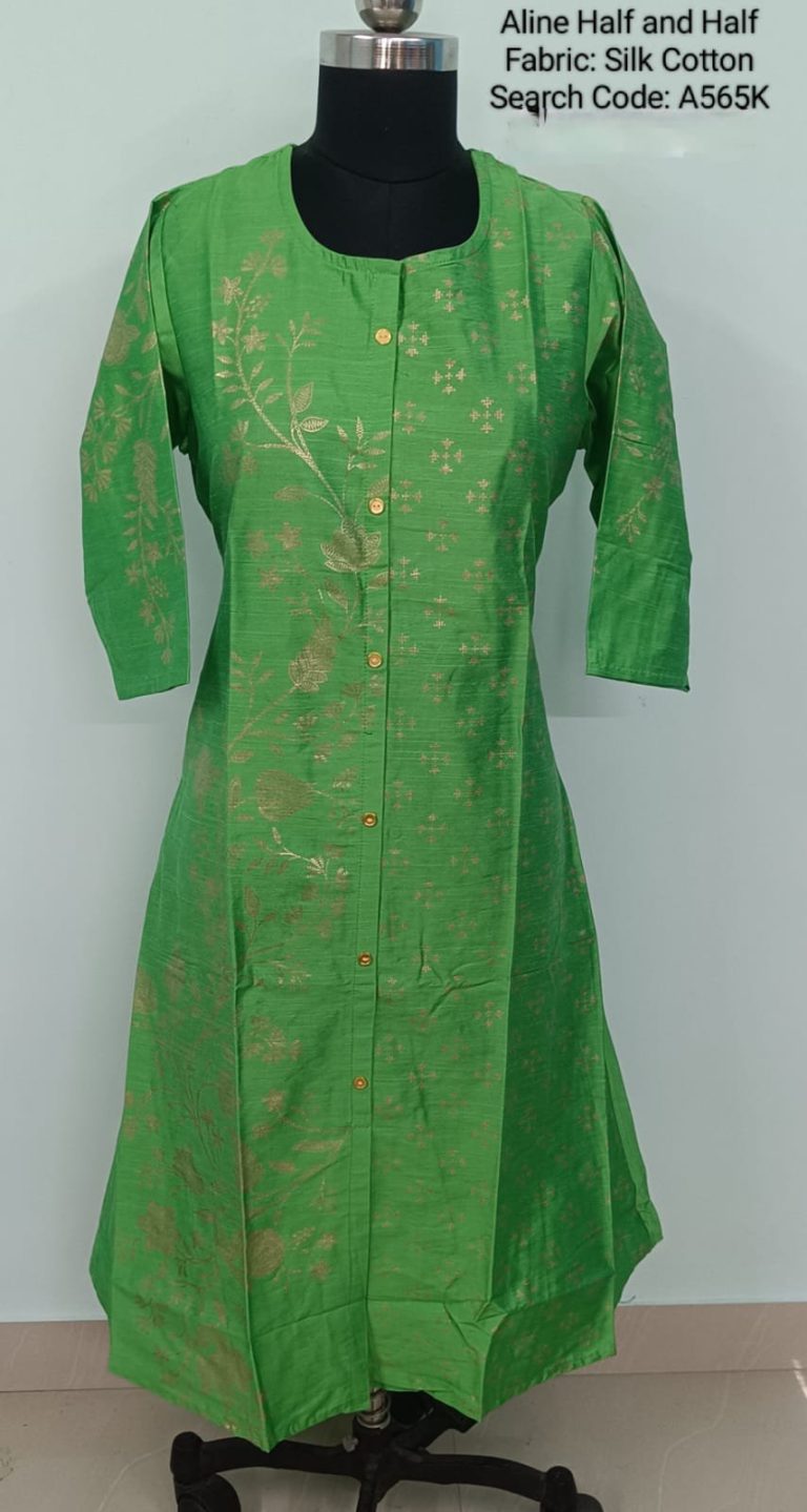 Elegant Silk Aline Kurtis: Half n Half Model – A565K