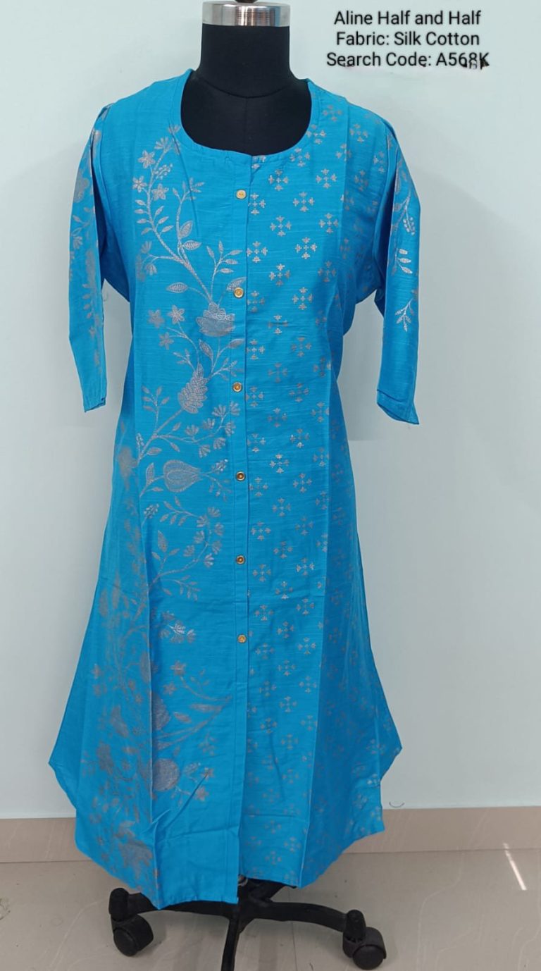 Elegant Silk Aline Kurtis: Half n Half Model – A568K