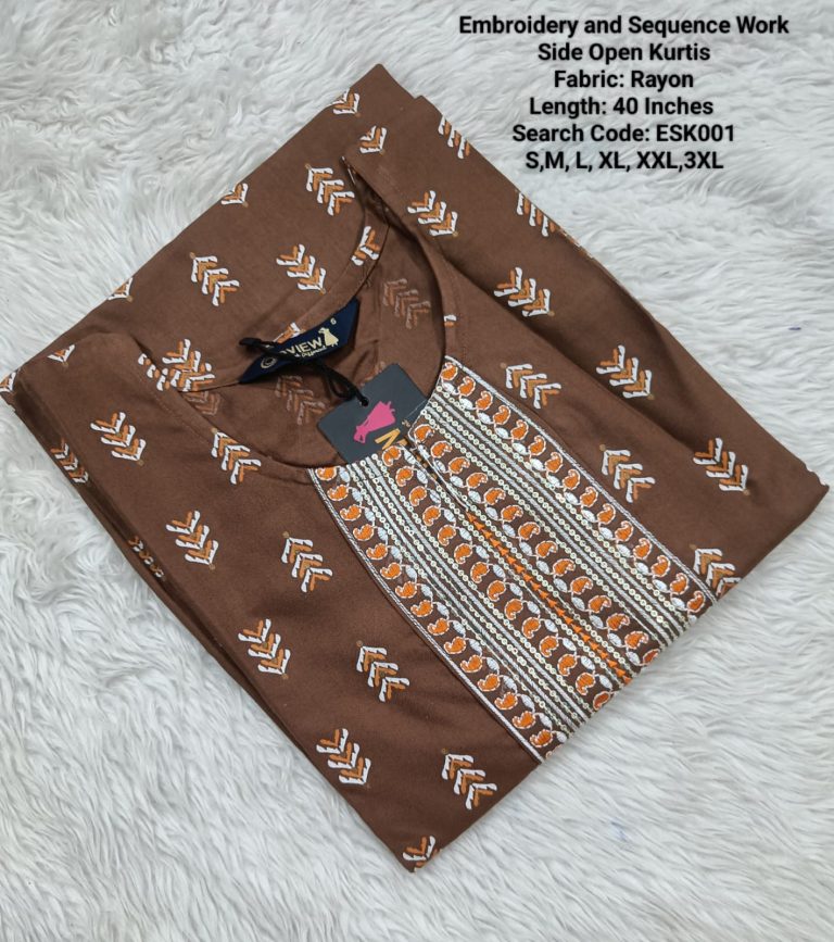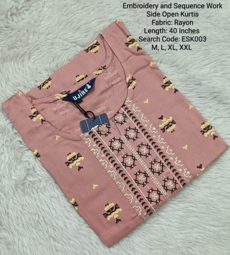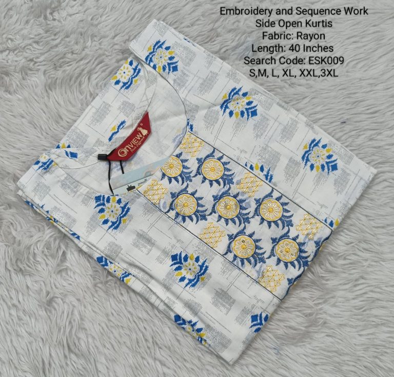 ESK017 – Embroidery and Sequence work Side Open Kurtis