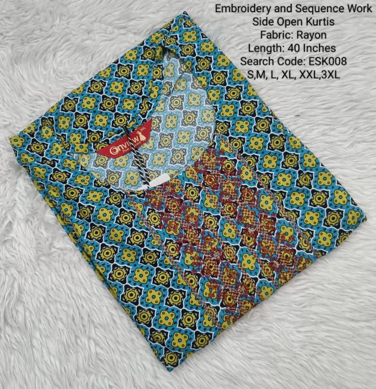 ESK013- Embroidery and Sequence work Side Open Kurtis