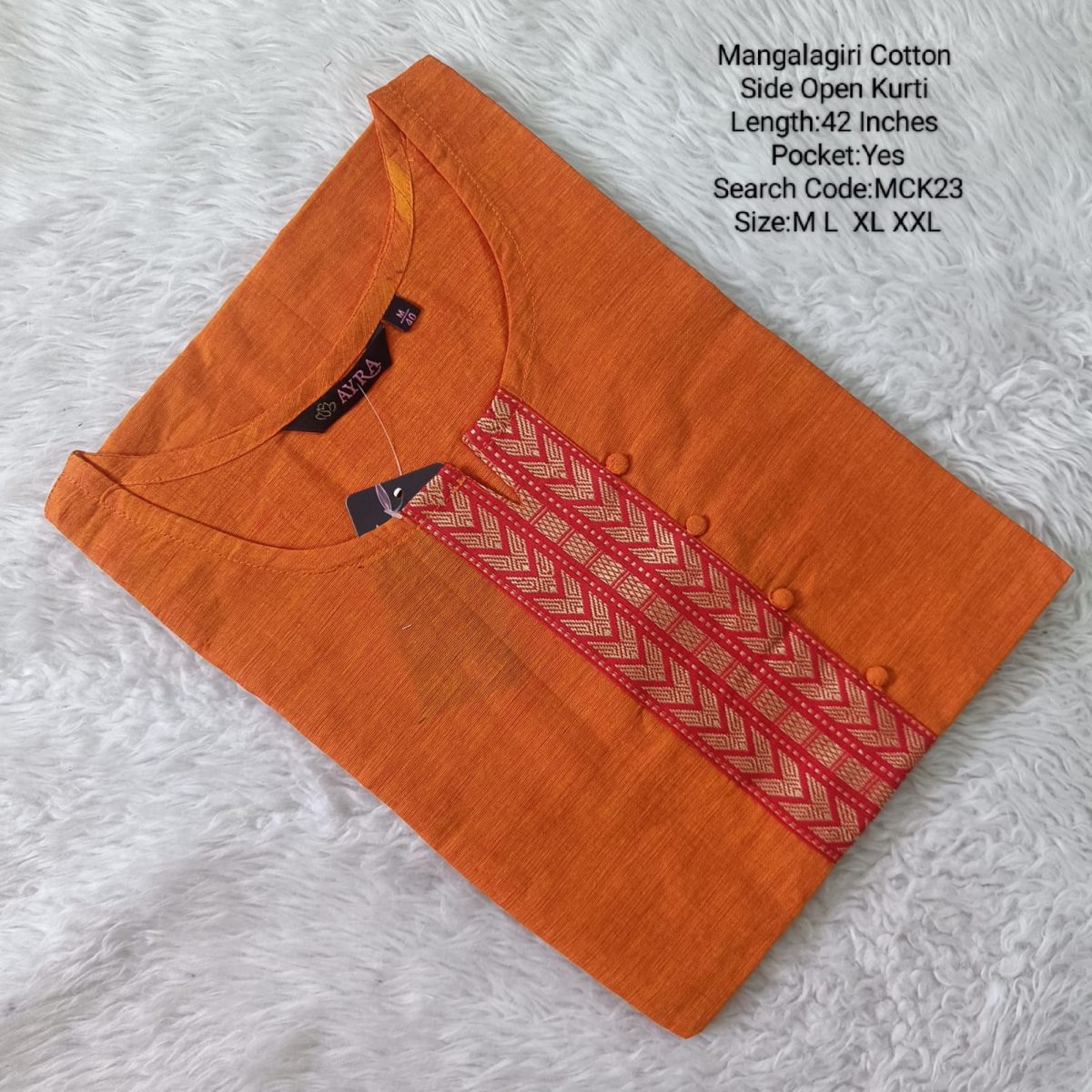MCK23- Mangalgiri Cotton Side Open Kurti