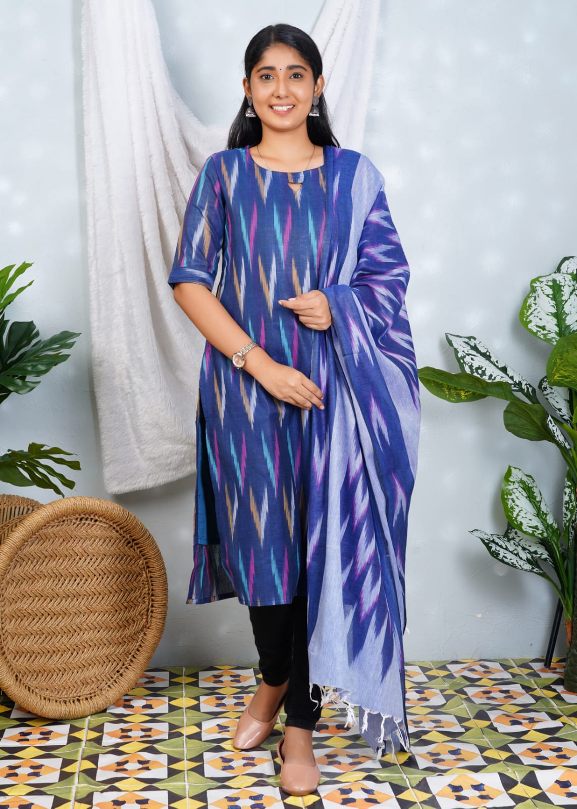 Elevate your ethnic wardrobe with our exquisite Ikkat Lining Side Open Kurti with Dupatta, a perfect blend of traditional artistry and contemporary style. Designed for comfort and elegance, this kurti set from our Avilyaa brand is a must-have for the modern woman.