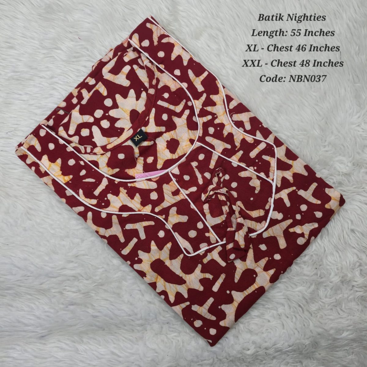 Material: 100% cotton. Cotton is a natural fiber known for its breathability, softness, and absorbency, making it ideal for nightwear.