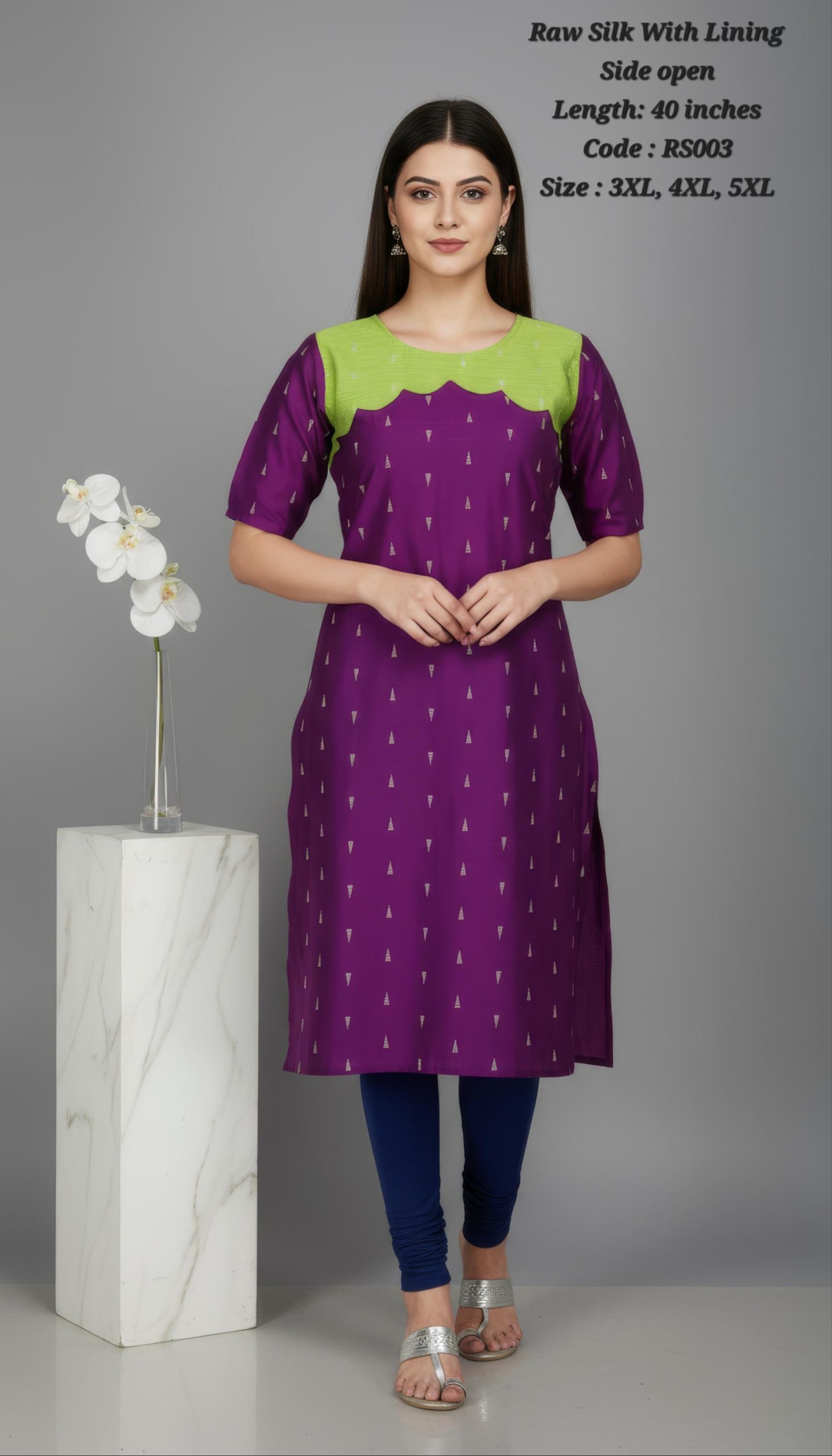 Raw Silk Side-Open Kurthi with Lining –  Elegant Comfort Meets Traditional Style