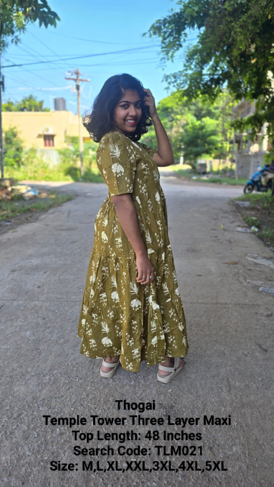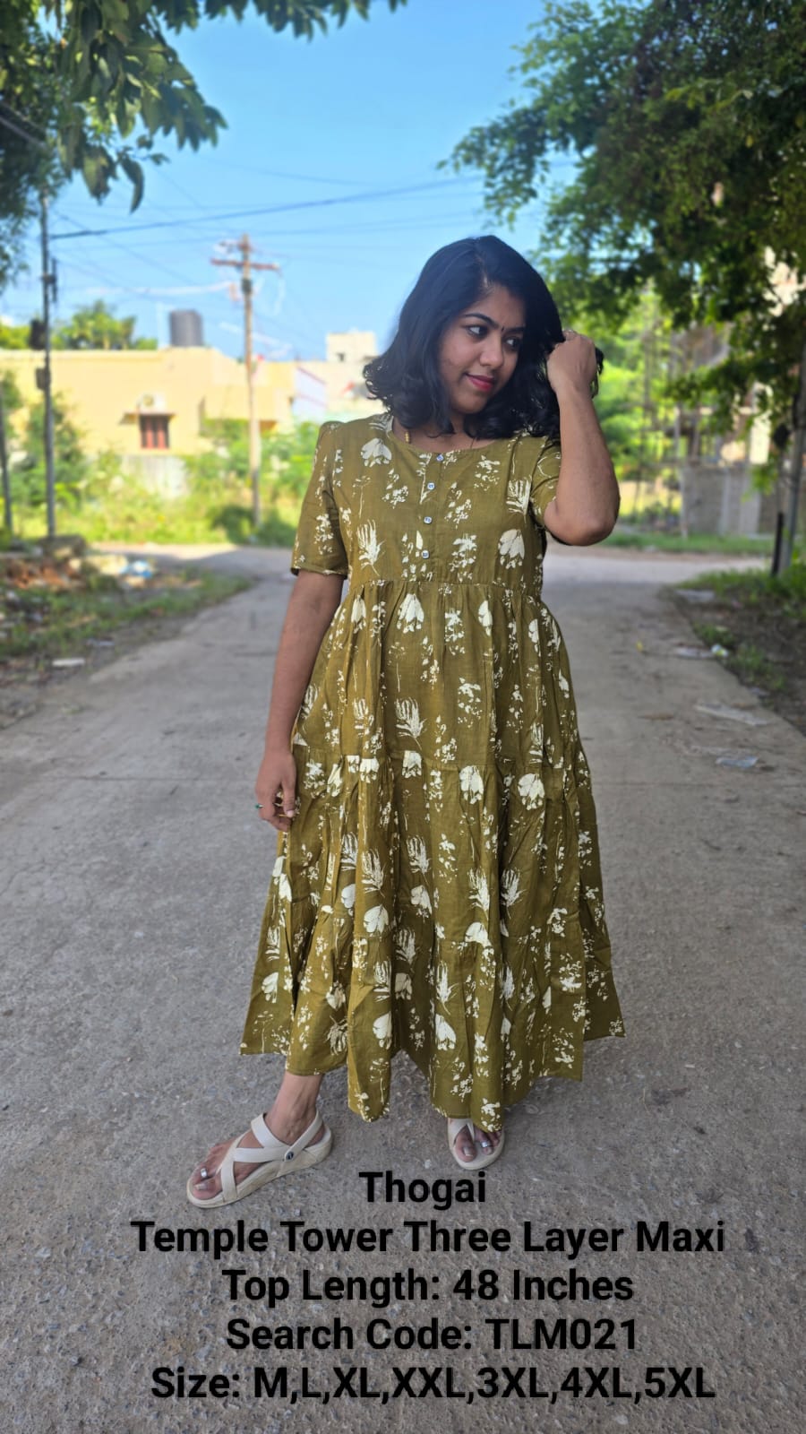 TLM021 – Thogai – Temple Tower Three Layer Maxi Dress