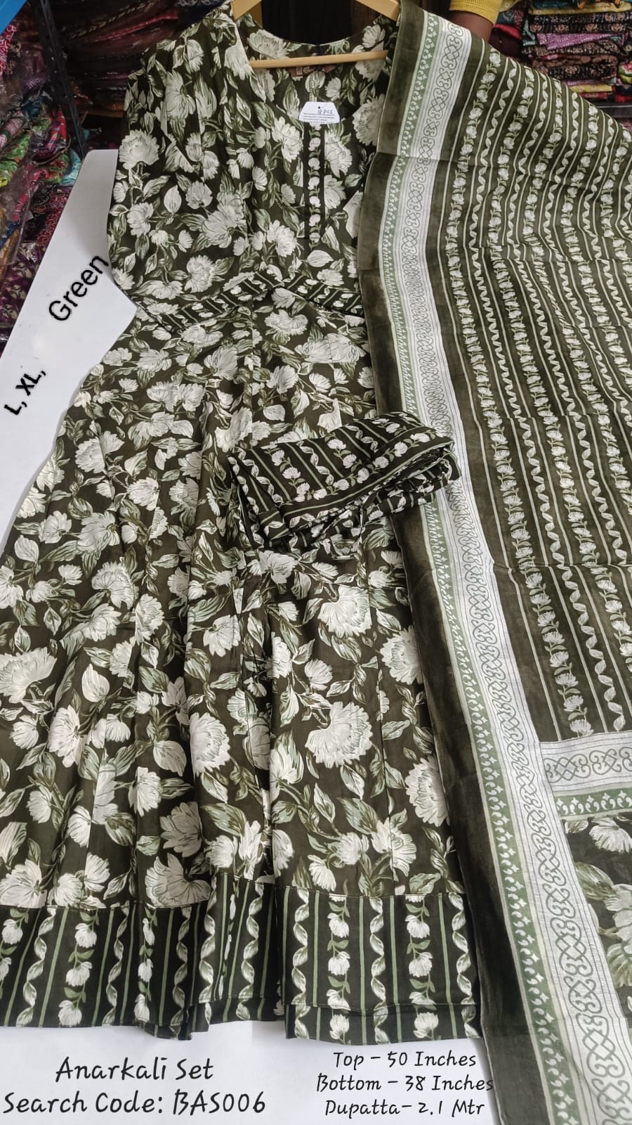 Mehandi Green Cotton Anarkali Full Set - BAS006