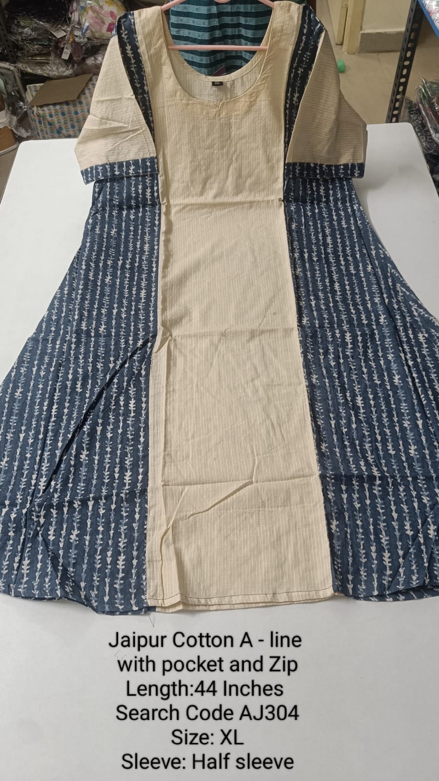 Navy Blue Jaipur Cotton A-Line Kurtis - AJ304
