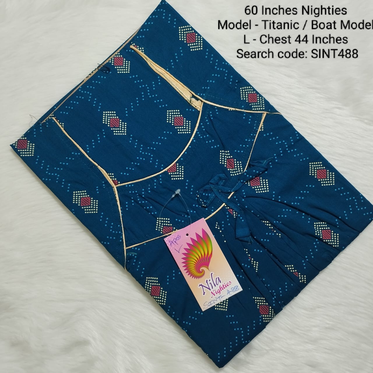Blue Cotton Nila Titanic Model 60 Inches Nighties - SINT488