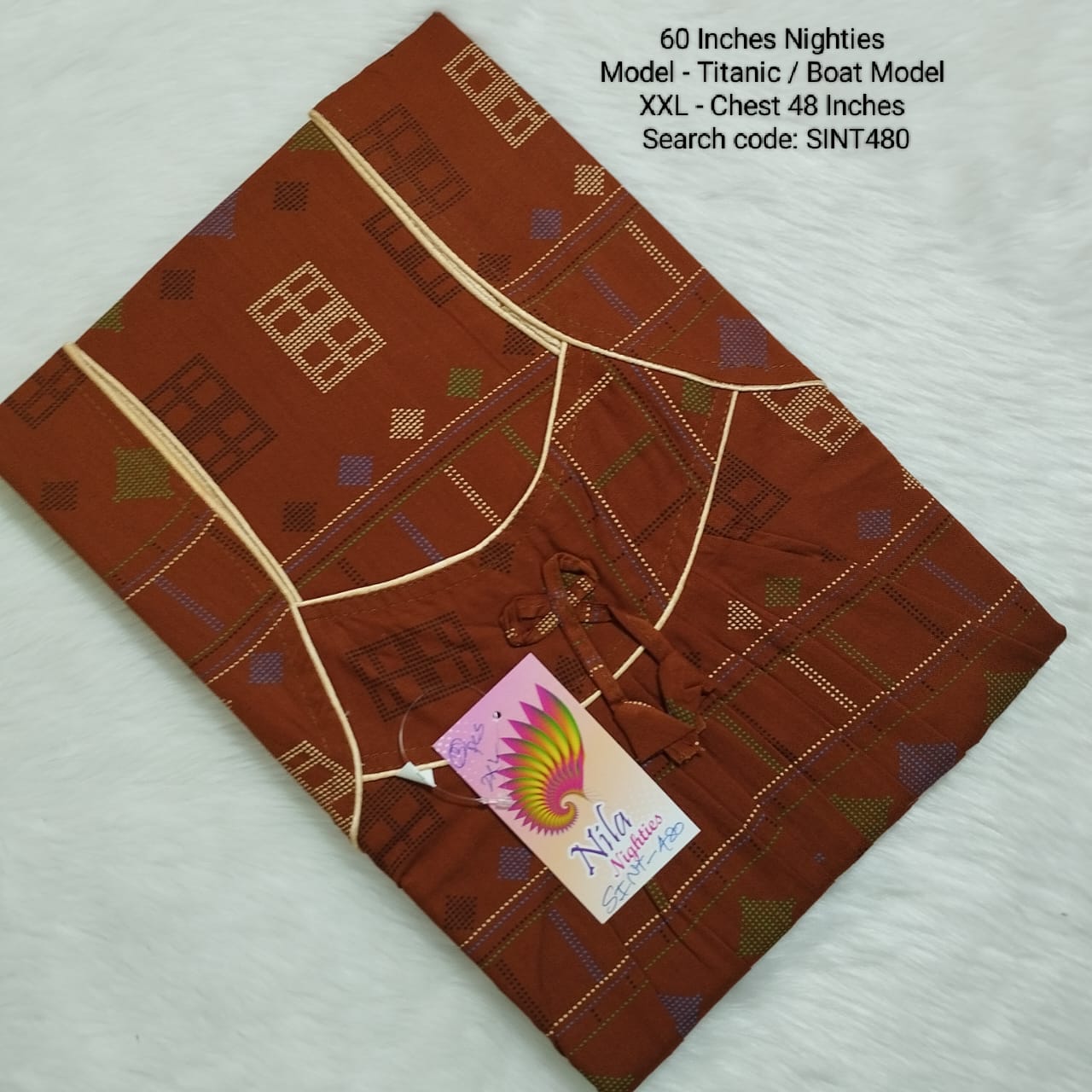 Brown Cotton Nila Titanic Model 60 Inches Nighties - SIN480