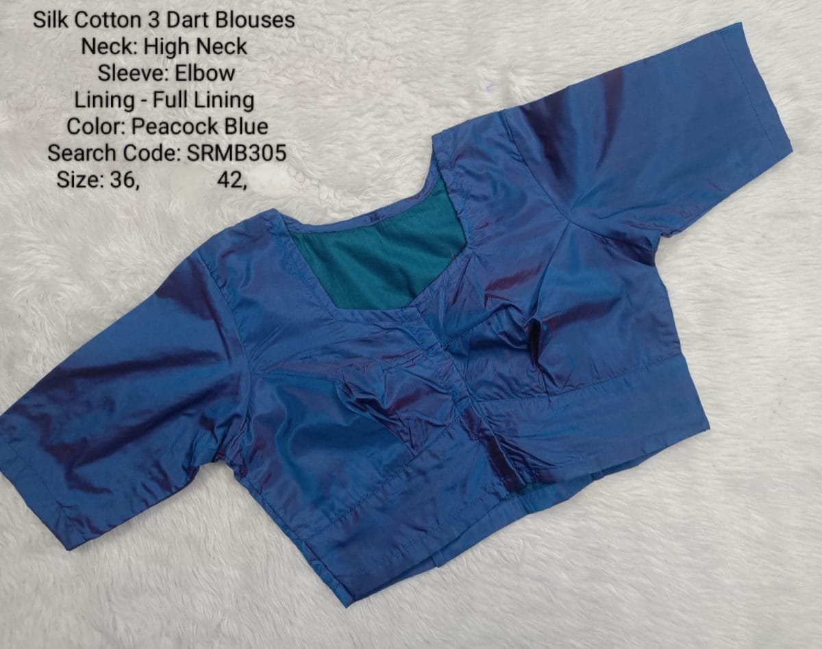 Blue Silk Cotton 3 Dart High Neck Blouse - SRMB305