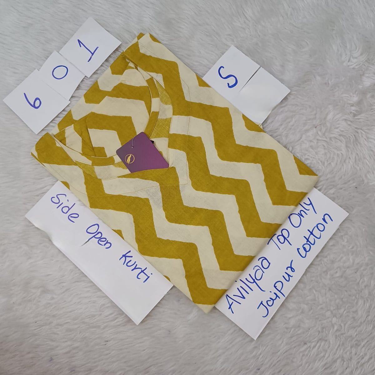 Mustard Jaipur Cotton Side Open Kurti Top Only Collection -JCLT601