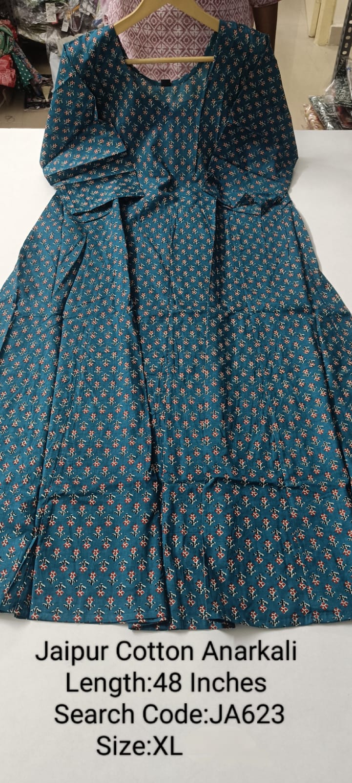 Peacock Blue Jaipur Cotton Anarkali - JA623