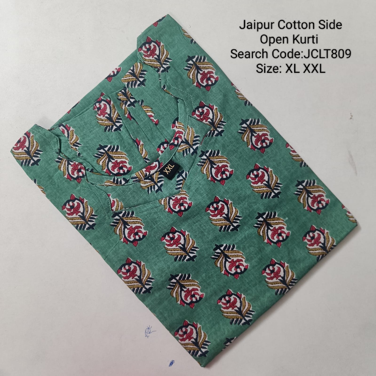 Green Jaipur Cotton Side Open Kurti Top Only Collection -JCLT809