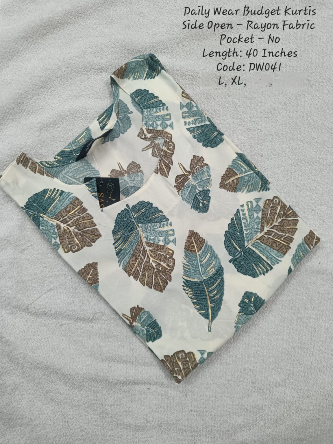 White Rayon Daily wear Budget Side Open Kurtis -DW041