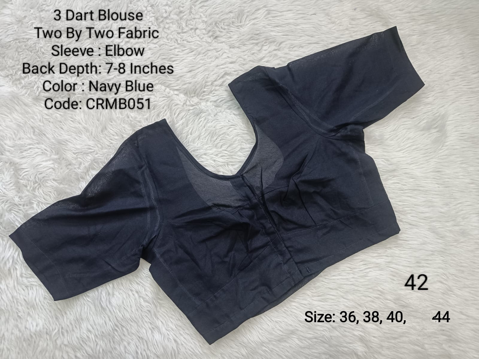 Navy Blue Two by Two Cotton 3 Dart Round Neck Blouse -CRMB051