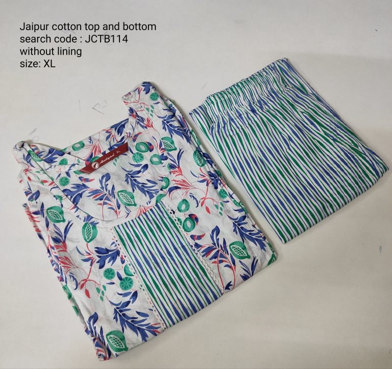 ₹750.00 – ₹850.00Price range: ₹750.00 through ₹850.00 (Including tax)Jaipur Cotton Top and Bottom With Lining