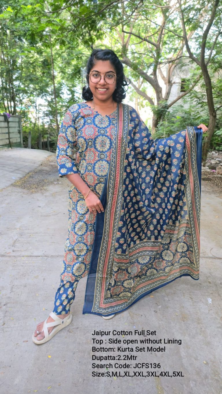 JCFS136- Jaipur Cotton – Full Set (Top, Bottom and Dupatta)